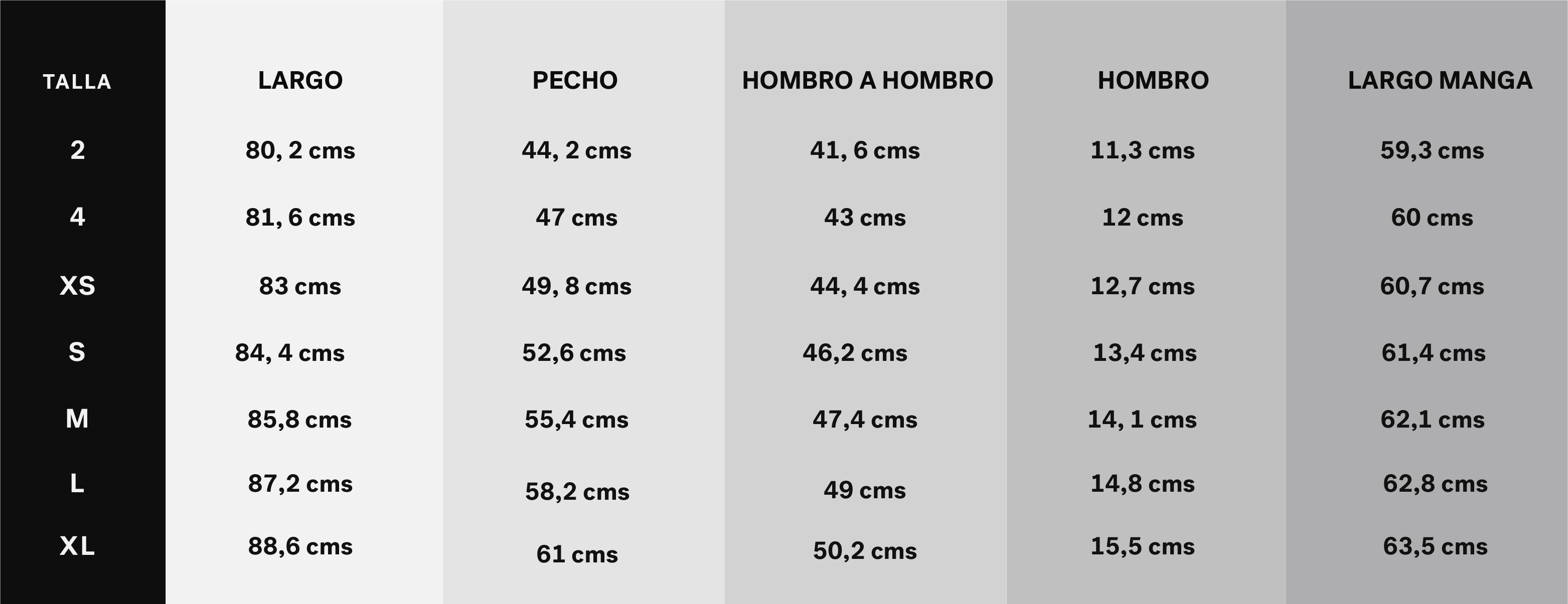 | Talla | 2, 4, L, M, S, XL, XS |